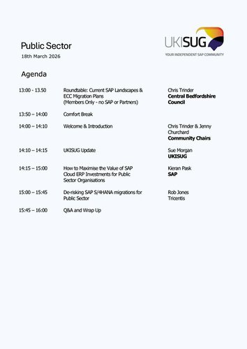 In our first session, delivered by Chris Trinder, Central Bedfordshire Council, learn from a comprehensive case study covering the complete migration path from SAP ECC to S/4HANA 1709 in HANA Enterprise Cloud (September 2017-2019), followed by the strategic upgrade to SAP RISE and datacentre migration (July 2022-December 2023). Understand the decision-making process behind SAP RISE adoption, tripartite relationship management and valuable lessons learned – both successes and areas for improvement.