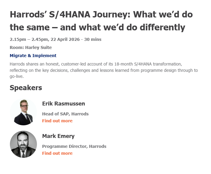 The S/4HANA Symposium takes place on 22 April 2026 in London. With the 2027 deadline approaching and a packed agenda of peer-led sessions, this is one event you won't want to miss.