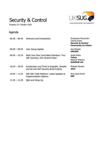 Paul will unveil the latest developments in SAP's much-anticipated GRC2026 platform, providing you with essential insights into the comprehensive suite covering Access Governance, Risk Management, Controls and Compliance, Security and Reporting. This knowledge-rich session will explore the exciting AI integration opportunities and solution roadmaps that will empower your to strategically plan their future GRC deployments, helping our members stay ahead of the curve in governance, risk and compliance.